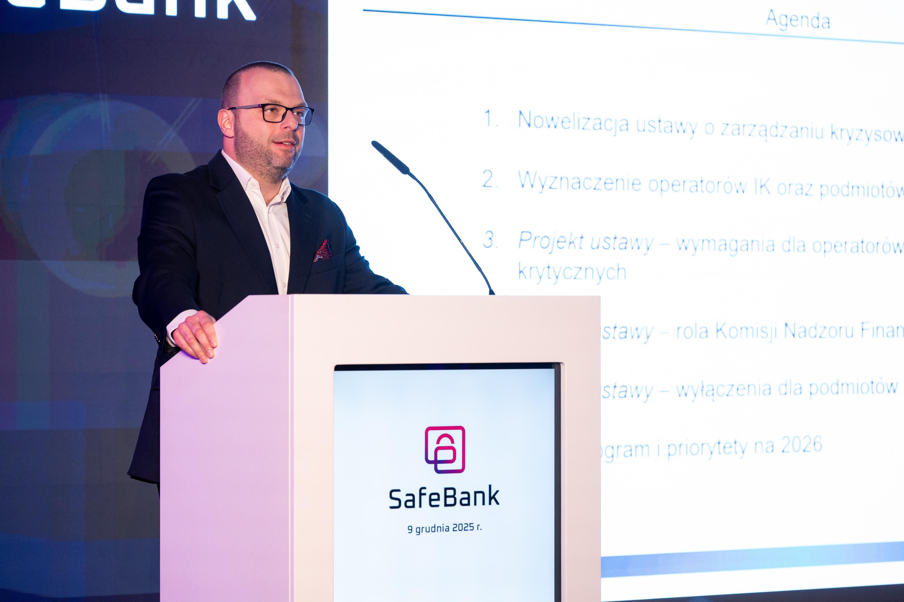 Krzysztof Dąbrowski, Dyrektor Pionu Bezpieczeństwa oraz Bartłomiej Getlich, Dyrektor Departamentu Bezpieczeństwa i Ochrony Informacji, wystąpili na konferencji SafeBank - corocznym spotkaniu ekspertów sektora finansowego, administracji publicznej i instytucji nadzorczych, poświęconym kluczowym wyzwaniom związanym z bezpieczeństwem i odpornością operacyjną banków.