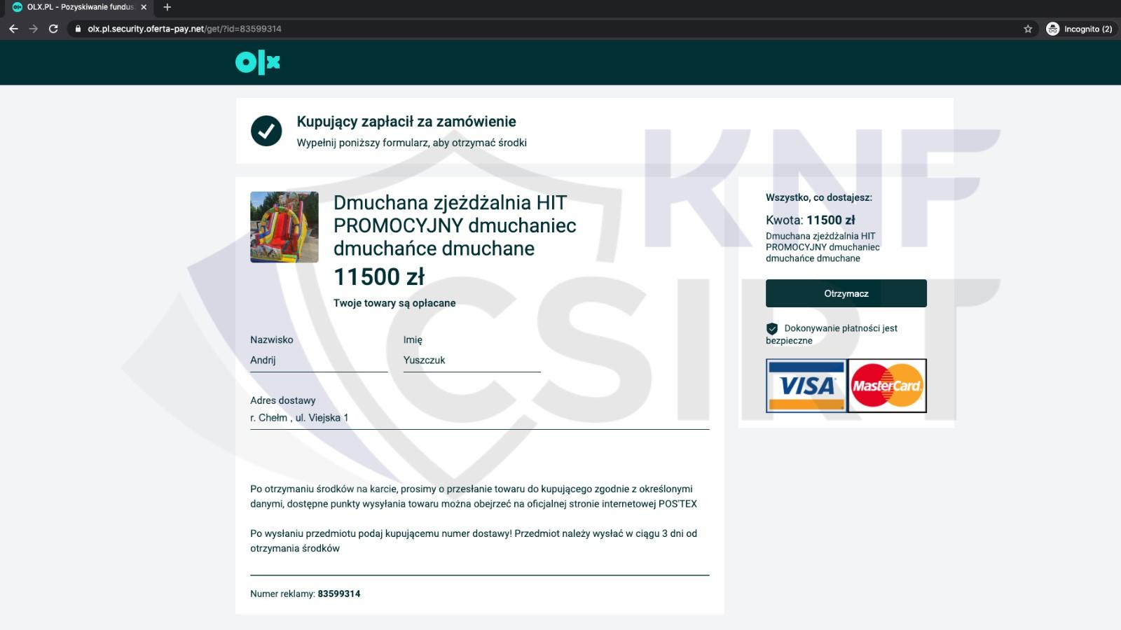 Niestety nadal w Internecie panuje trend na przestępstwa dokonywane za pomocą fałszywych stron podszywających się pod znane portale z ogłoszeniami.