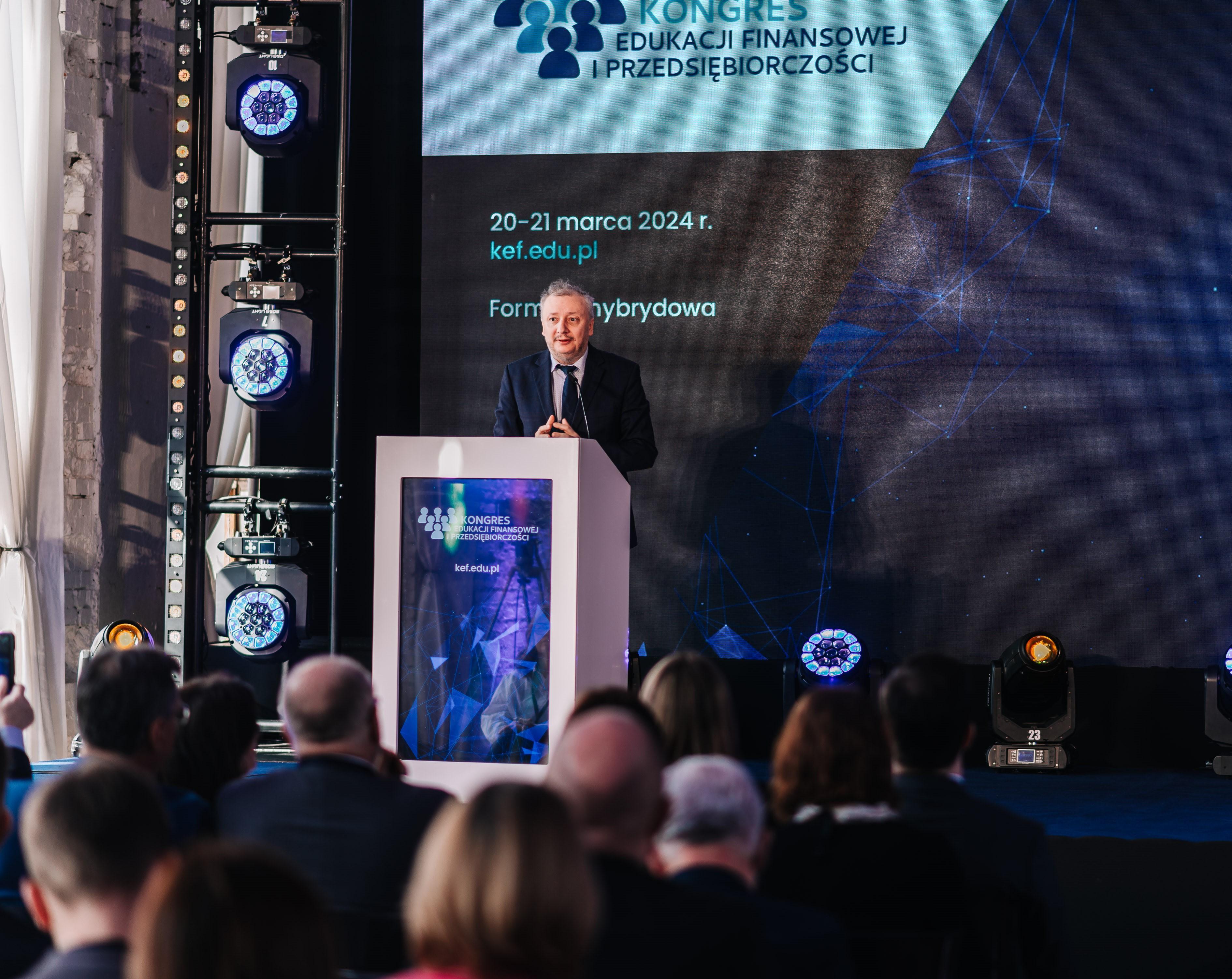 Sebastian Skuza, Deputy Chair of Komisja Nadzoru Finansowego (KNF), delivered a speech during the opening of the second day of the 8th Congress of Financial Education and Entrepreneurship as part of the 12th edition of the Global Money Week.